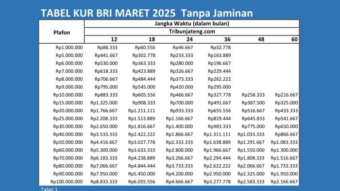 Sebelum mengajukan pinjaman, pelaku usaha disarankan untuk mencermati tabel KUR BRI November 2025 sebagai simulasi angsuran bulanan yang sesuai dengan kemampuan bayar. Berikut adalah rincian dari skema KUR BRI 2025: