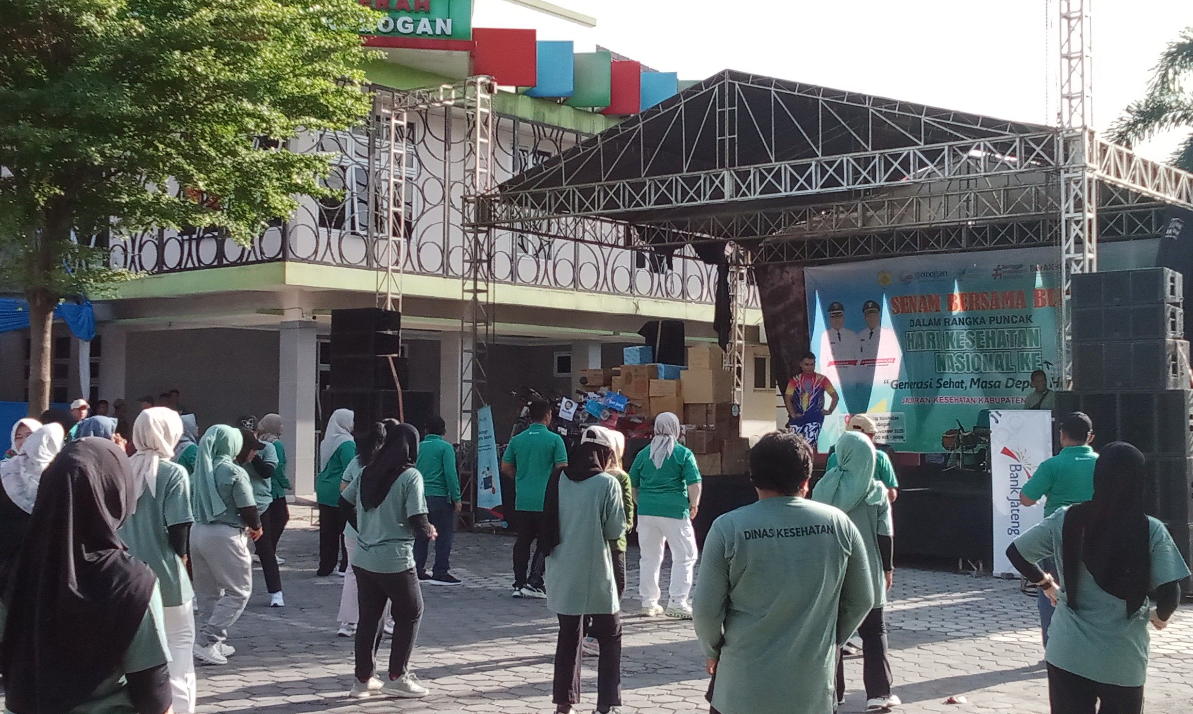 Acara dimulai sejak pukul 06.00 WIB dan diikuti oleh ratusan pegawai kesehatan dari berbagai instansi, termasuk perwakilan dari Puskesmas dan Rumah Sakit se-Kabupaten Grobogan. Sugeng Prasetyo dan istri tampak antusias mengikuti gerakan senam bersama yang dipandu oleh instruktur. Selain itu, hadir juga Dandim 0717 Grobogan Letkol Kav Barid Budi Susila, Ketua DPRD Grobogan Lusia Indah Artani, Sekda Grobogan Anang Armunanto serta perwakilan dari Polres Grobogan, Pengadilan Negeri, Pengadilan Agama, dan Kejaksaan Negeri Purwodadi.