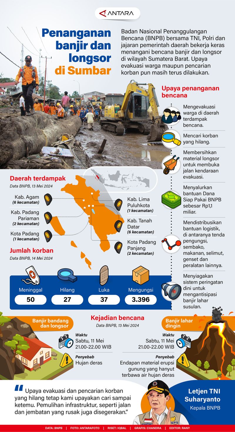 Menurut data Kantor SAR Padang pada Jumat (28/11), telah tercatat 22 orang meninggal dunia dan 12 orang masih dalam pencarian. Bencana ini berdampak pada total 12.000 lebih jiwa. Peristiwa banjir dan longsor tersebut terjadi di 13 kabupaten/kota, termasuk Padang, Pariaman, Pasaman Barat, dan Bukittinggi. Pemerintah Daerah Sumbar juga telah menetapkan status tanggap darurat selama 14 hari sejak Selasa, 25 November 2025.