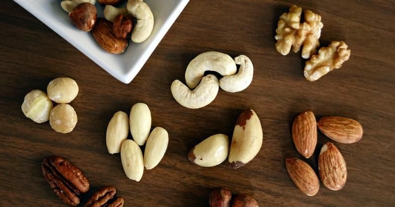 Kacang-kacangan seperti almond dan kenari merupakan sumber lemak sehat yang baik untuk kulit. Selain itu, kacang-kacangan juga kaya akan vitamin A, C, dan E yang membantu menghaluskan kulit serta membuatnya lebih cerah. Kandungan vitamin B pada kacang-kacangan juga bermanfaat untuk mengurangi garis halus dan kerutan. -