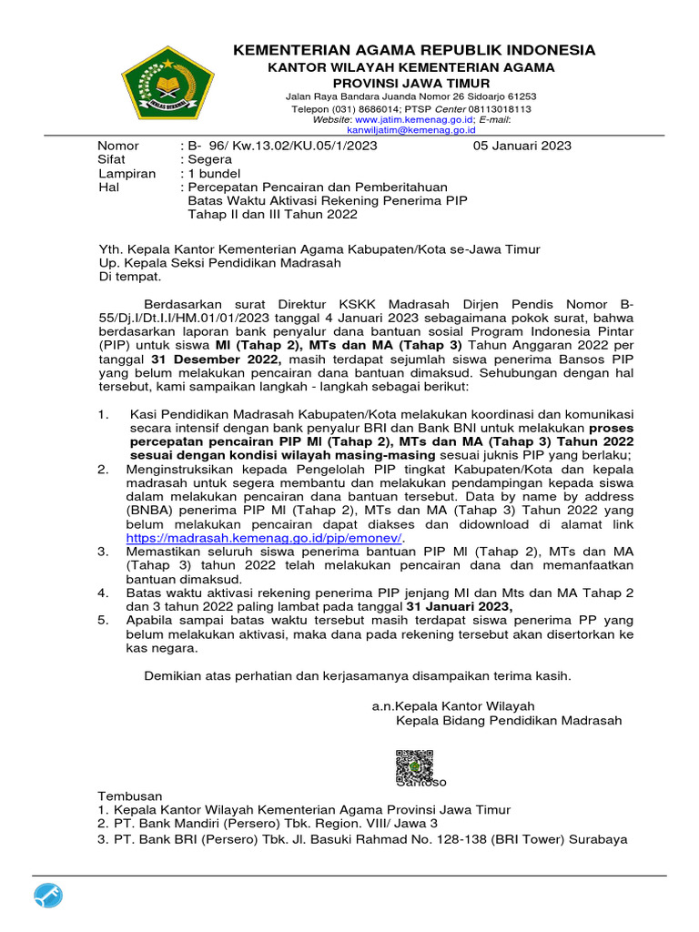 Pemerintah secara resmi telah memperpanjang masa aktivasi rekening PIP hingga 31 Januari 2026. Meski demikian, siswa dan orang tua sangat disarankan untuk tidak menunda proses ini. Apabila rekening tidak diaktifkan hingga batas waktu yang ditentukan, dana bantuan berpotensi dikembalikan ke kas negara dan tidak bisa lagi dicairkan.