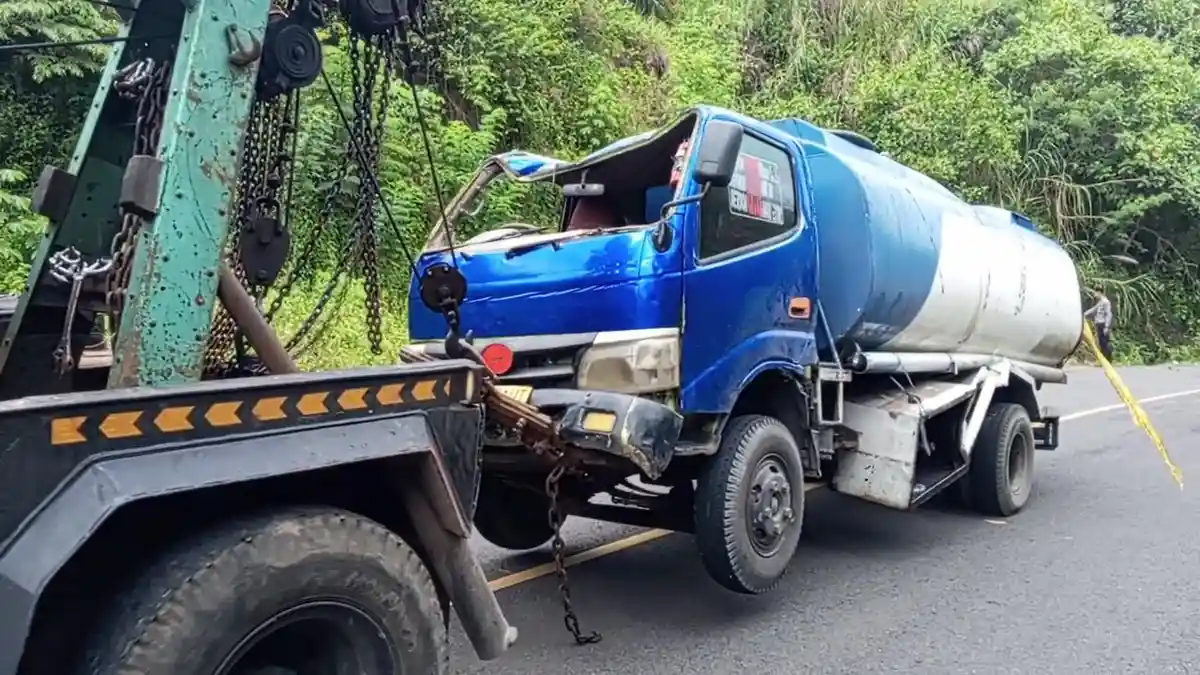 Truk tangki AG 9462 UT yang terguling di Jalur Lintas Selatan (JLS) Desa/Kecamatan Besuki saat membawa 8.000 liter solar, Jumat (28/11/2025) lalu. Kendaraan ini belakangan diketahui menggunakan plat nomor palsu, sementara plat nomor aslinya adalah AG 9642 UT.