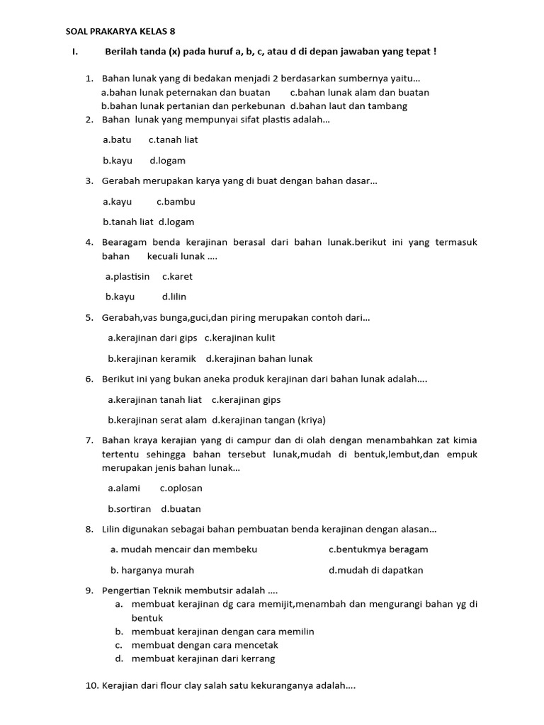 Berikut adalah beberapa contoh soal PAT Prakarya beserta jawabannya: