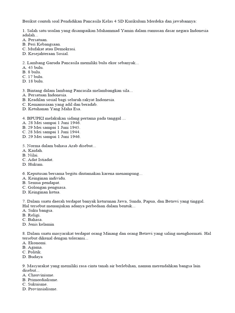 Latihan ini tidak hanya membantu siswa mempersiapkan ujian, tetapi juga menjadi bahan belajar mandiri yang berguna untuk memperkuat pemahaman mereka tentang pendidikan pancasila.