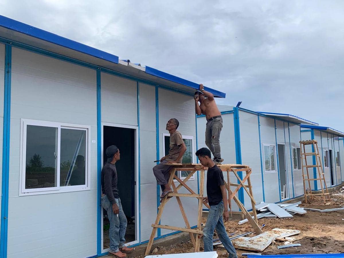 “Keunggulannya terletak pada sistem knock down atau rumah bangun cepat. Sehingga proses konstruksi lebih efisien. Setiap unit dilengkapi dua kasur, meja makan, kursi, televisi, serta kamar mandi dengan fasilitas lengkap,” imbuhnya.