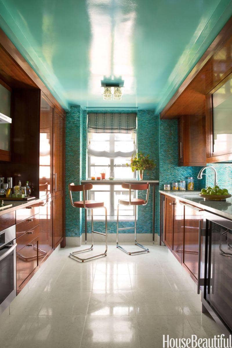 Untuk kamu yang menyukai laut, warna teal dan tembaga bisa menghadirkan kesan laut lepas di rumahmu. Supaya tidak terlalu berat, kamu bisa mengaplikasikan warna teal pada seluruh dinding dan warna tembaga hanya pada perabotanmu. -