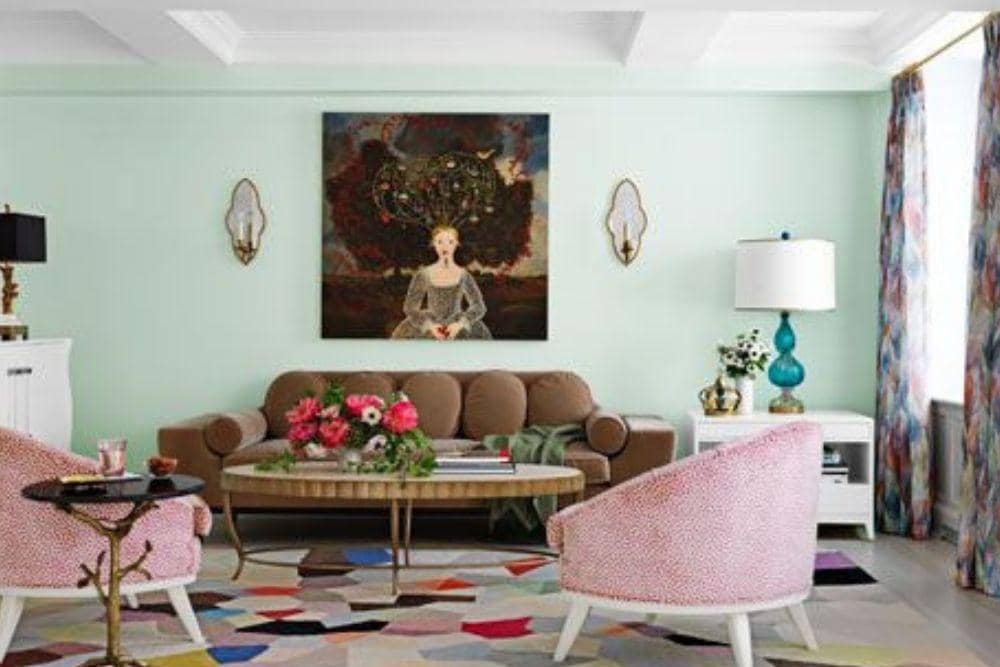 Dua warna pucat memang selalu menghasilkan kesan ringan pada ruangan. Warna ini bisa kamu aplikasikan jika ruanganmu sudah terisi penuh dengan perabotan bermaterial berat, seperti kayu atau besi tempa. -