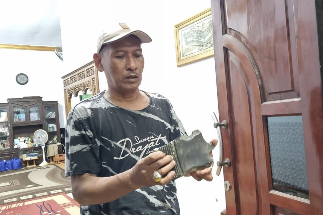 Pantauan di lokasi menunjukkan bahwa lempengan besi yang diduga menimpa atap rumah Nur Holis hingga jebol berukuran sekitar 15×8 cm, dengan ketebalan diperkirakan 2-3 cm dan berat sekitar dua kilogram.