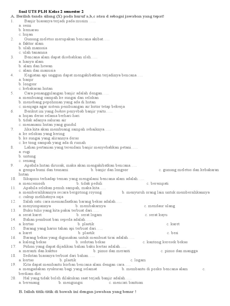Soal Pendidikan Lingkungan Hidup untuk Kelas 5 Semester 2